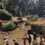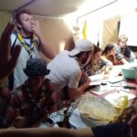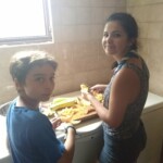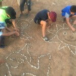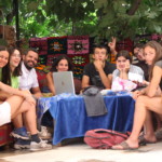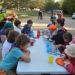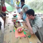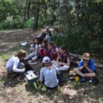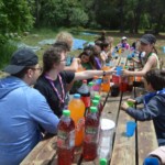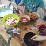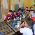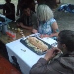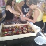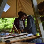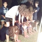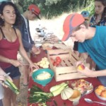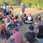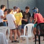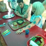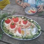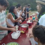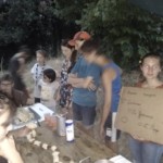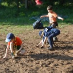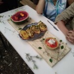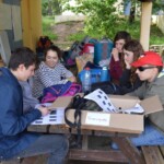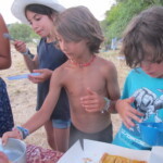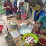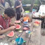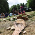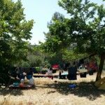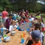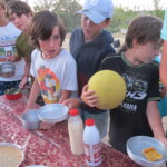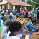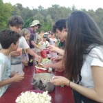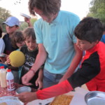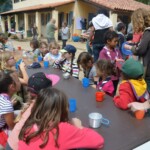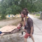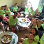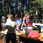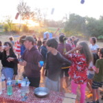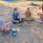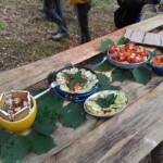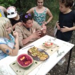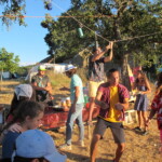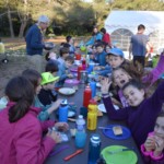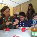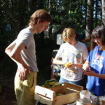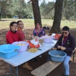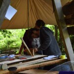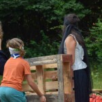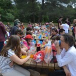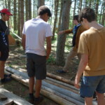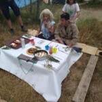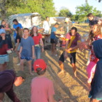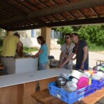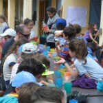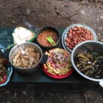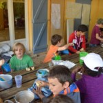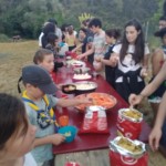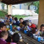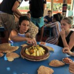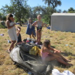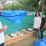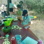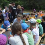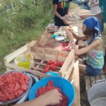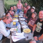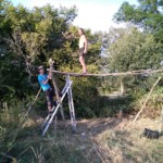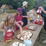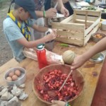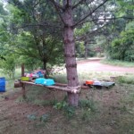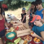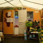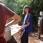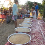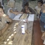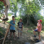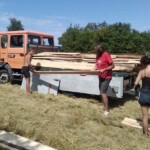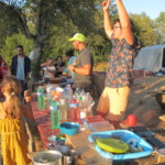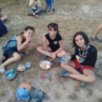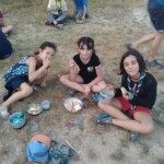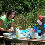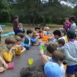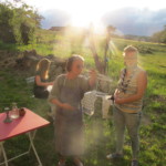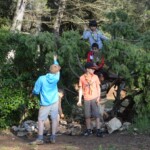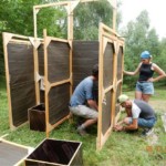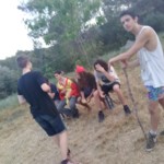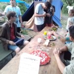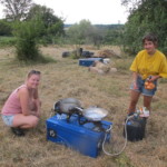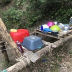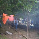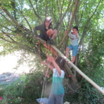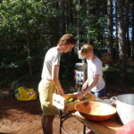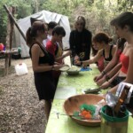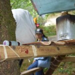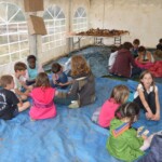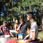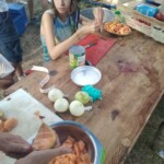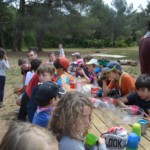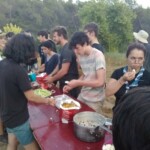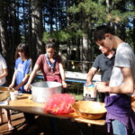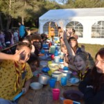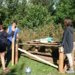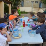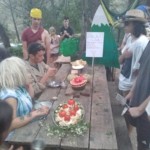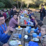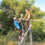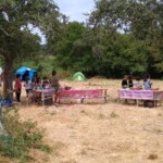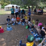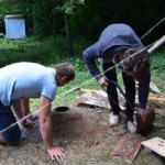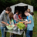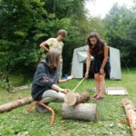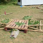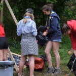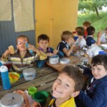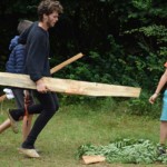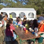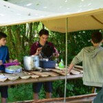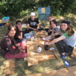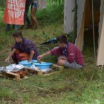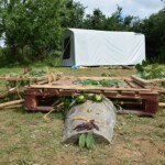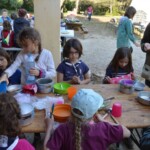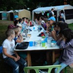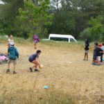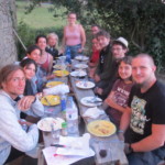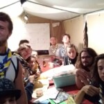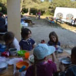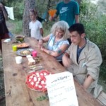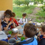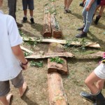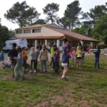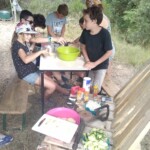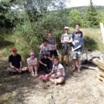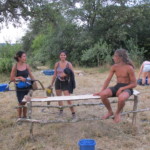 Il y a entre autres le montage des toilettes sèches, construction du vaisselier des loulous, arrivée des marseillais, 1er repas des éclés (pâtes bolognaises), les bancs sont encore à construire.