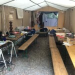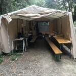 Voilà les 1ères photos du camp d’été à Bécours. Au programme : installation !