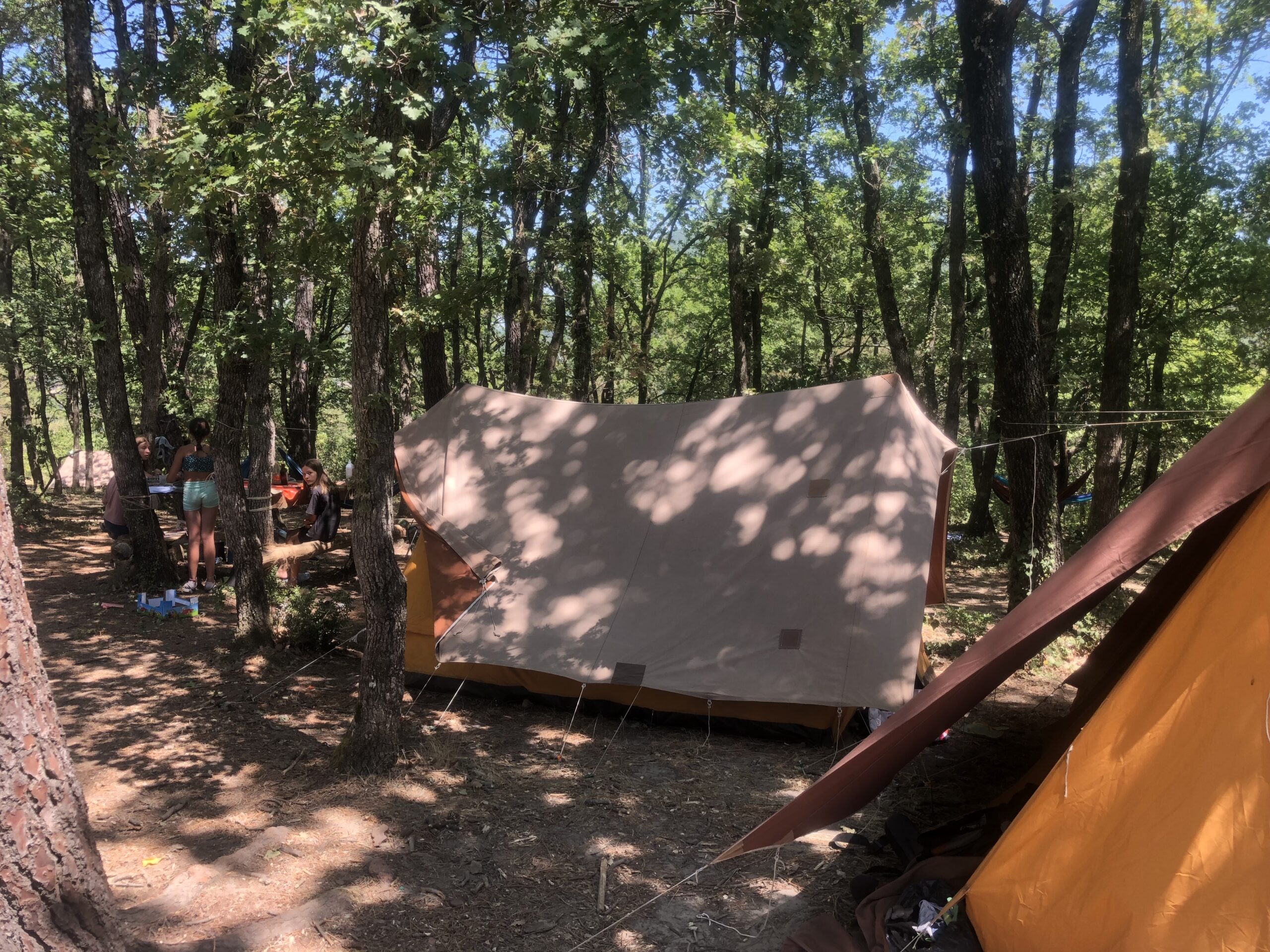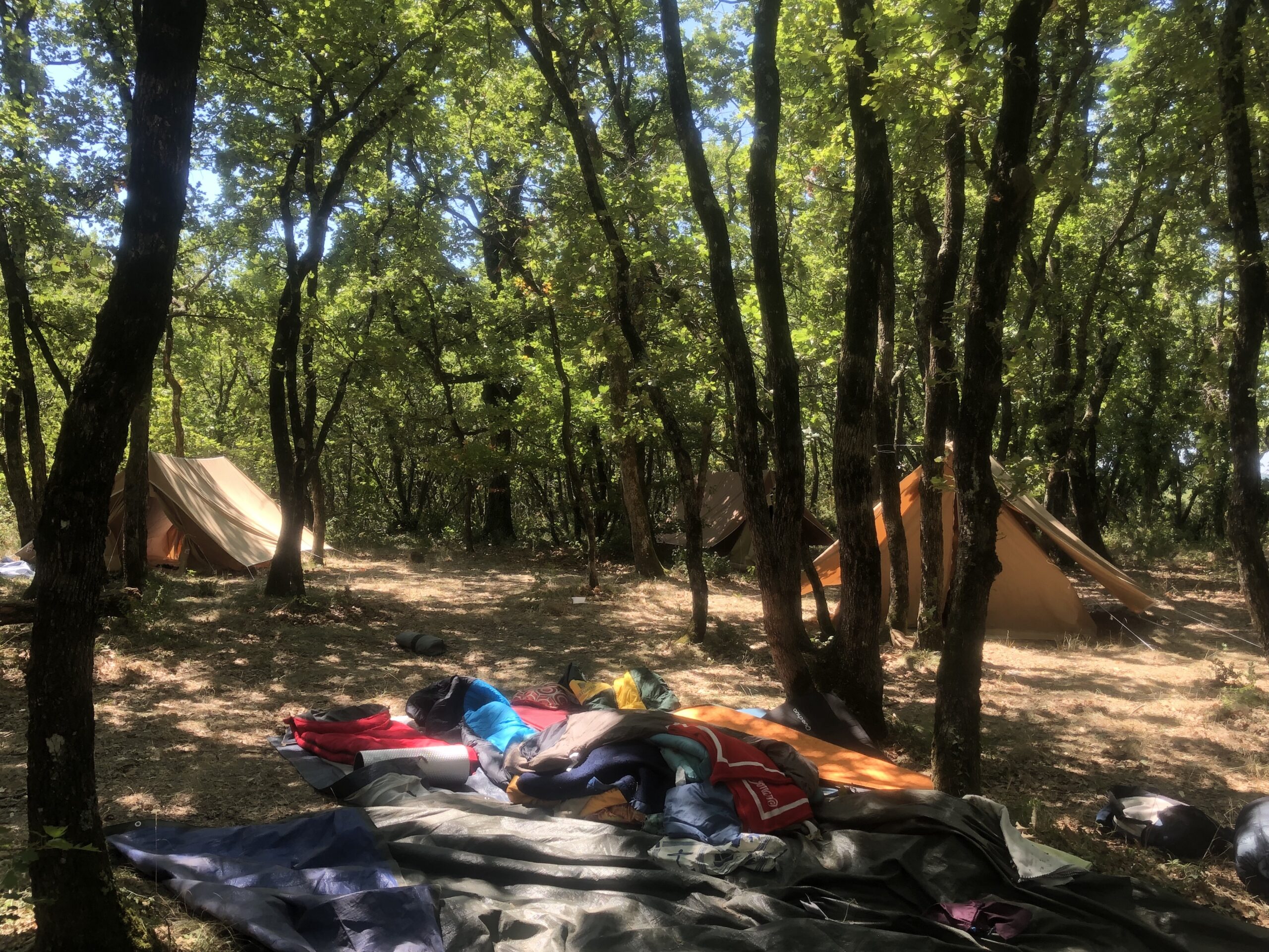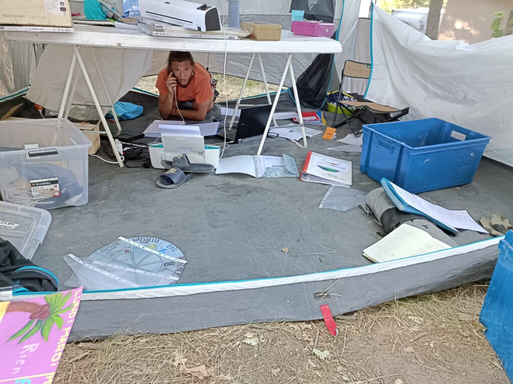 Voilà les 1ères photos du camp d’été à Bécours. Au programme : installation !