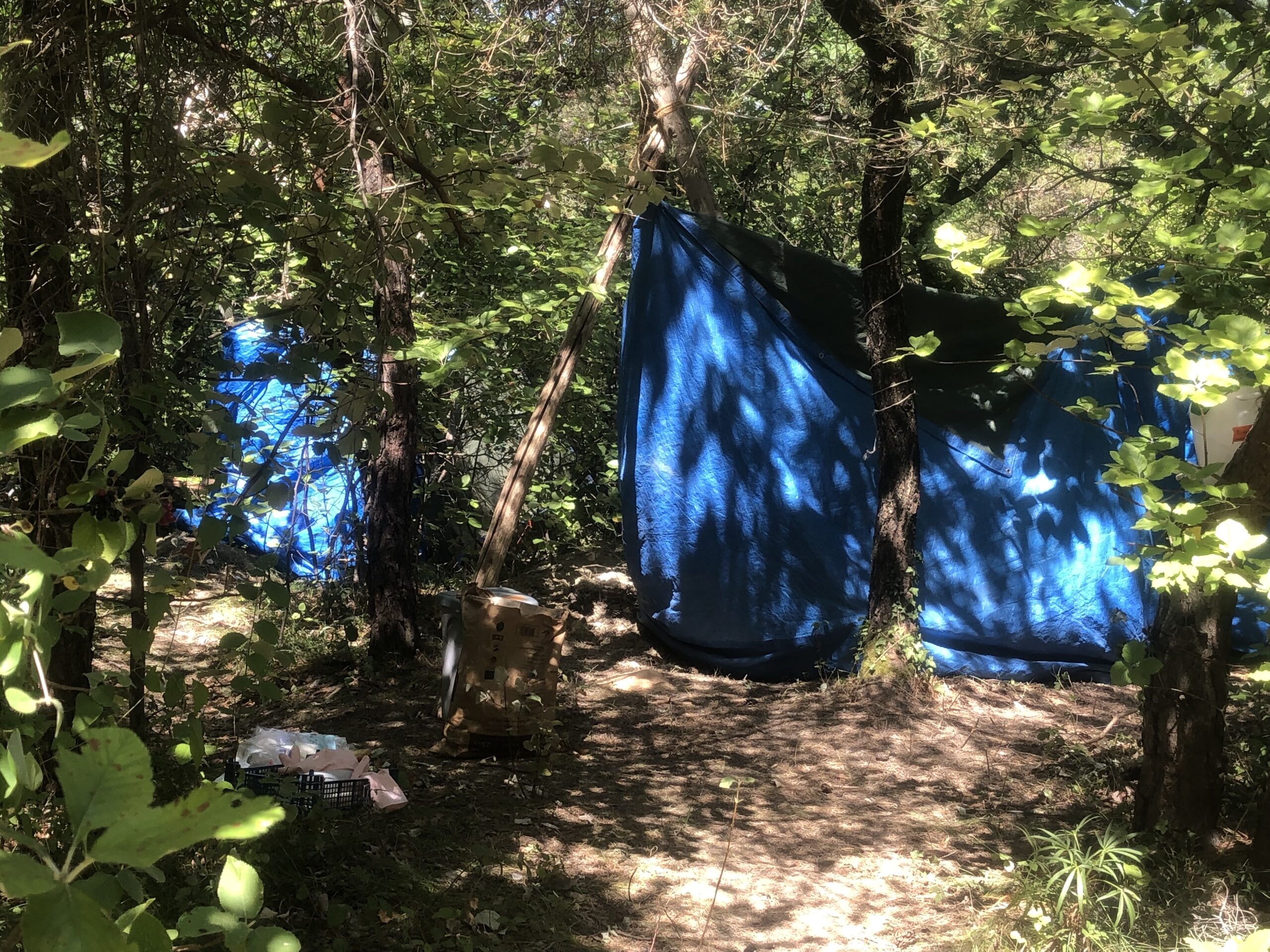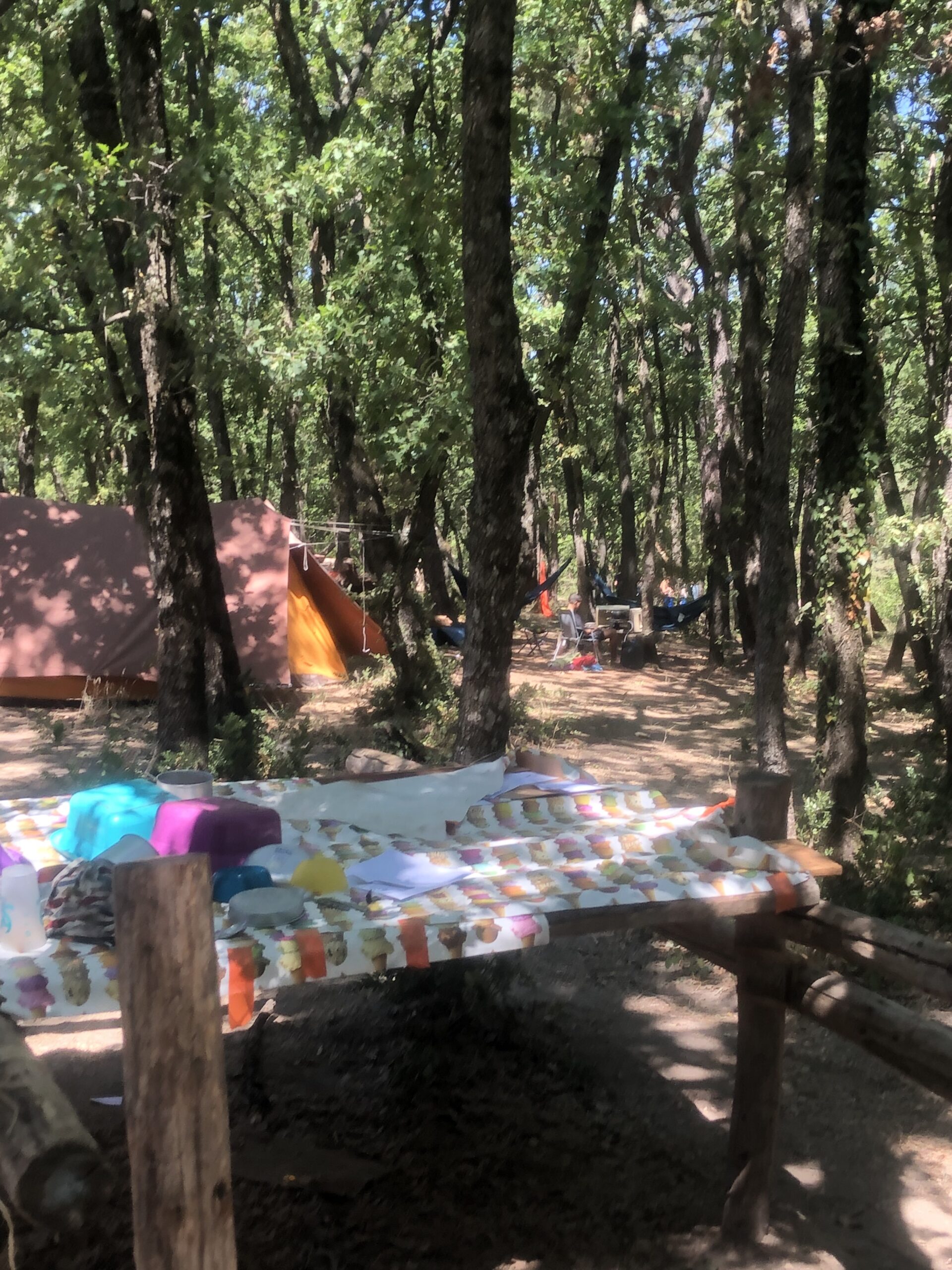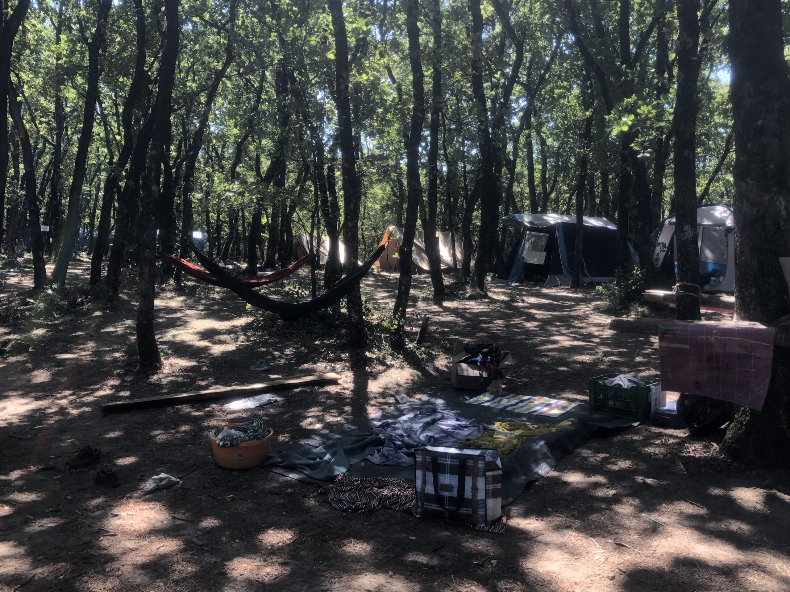 Voilà les 1ères photos du camp d’été à Bécours. Au programme : installation !